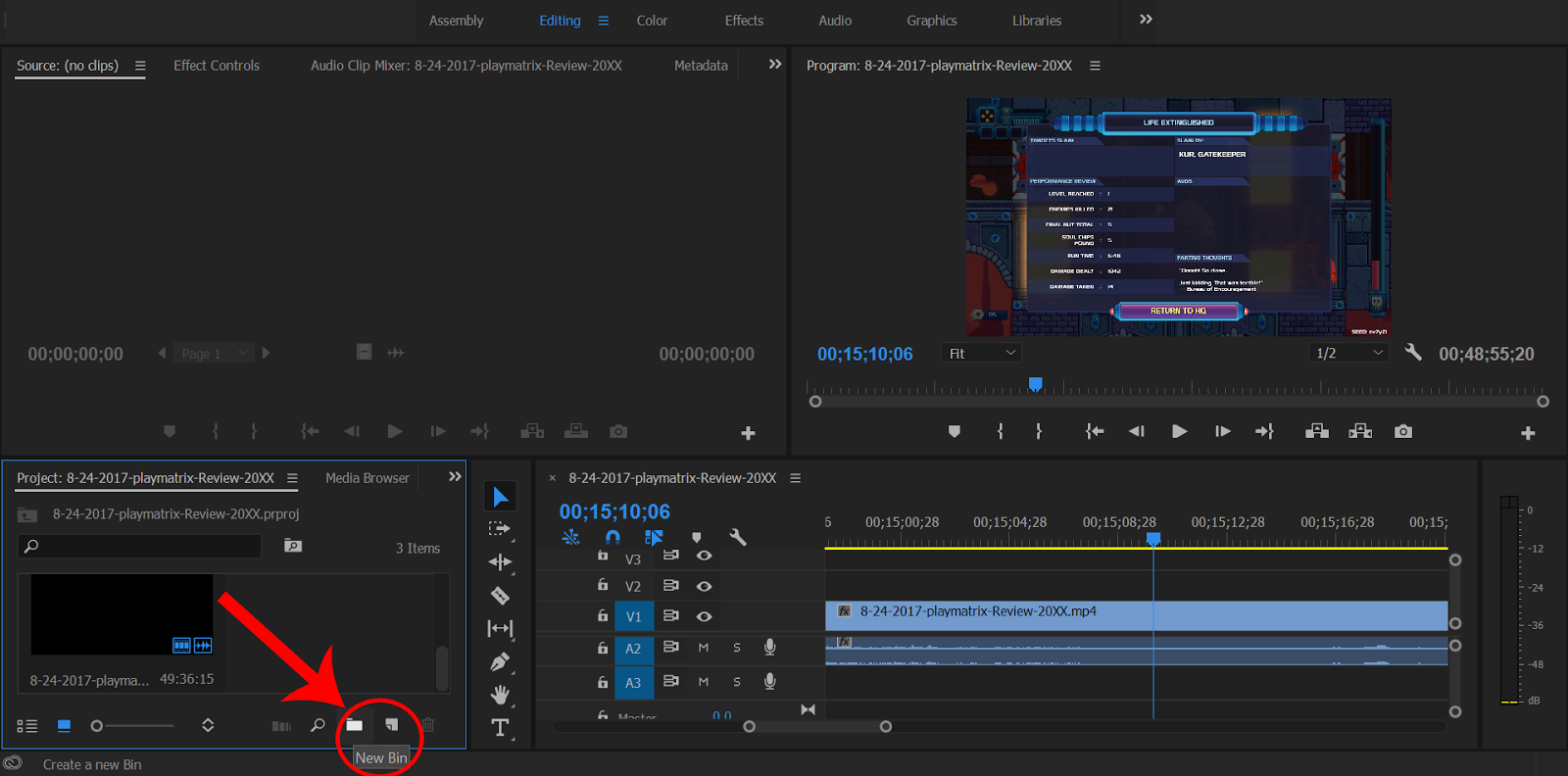 How? Basically, if you look on the bottom left of your screen, you’ll see all the clips for your session. There is also the option to create Bins (Folders) for your clips in order to better organize them.