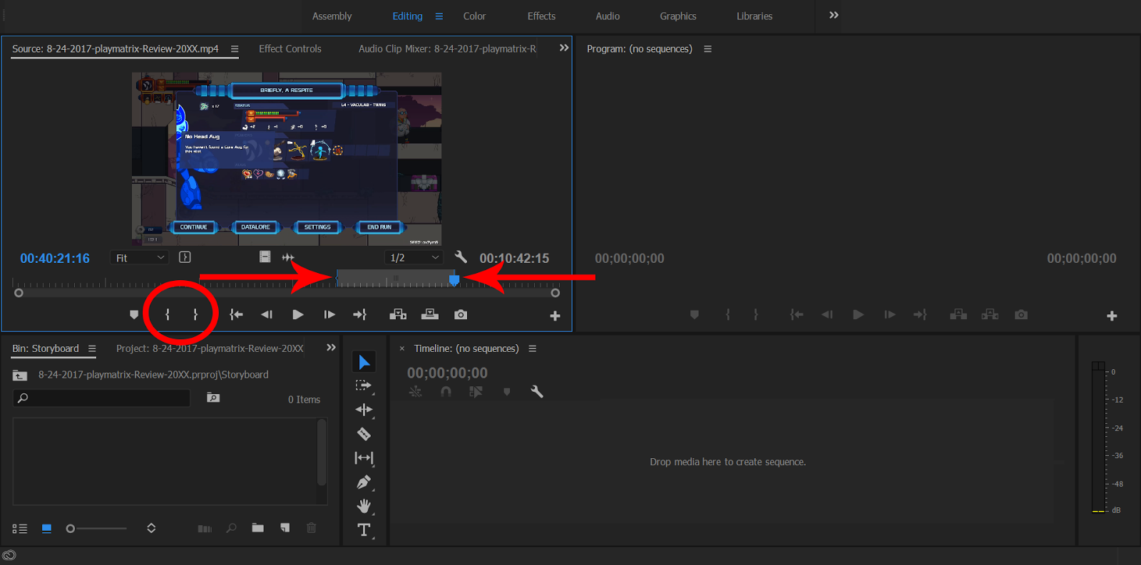 Mark the beginning of your clip selection in source